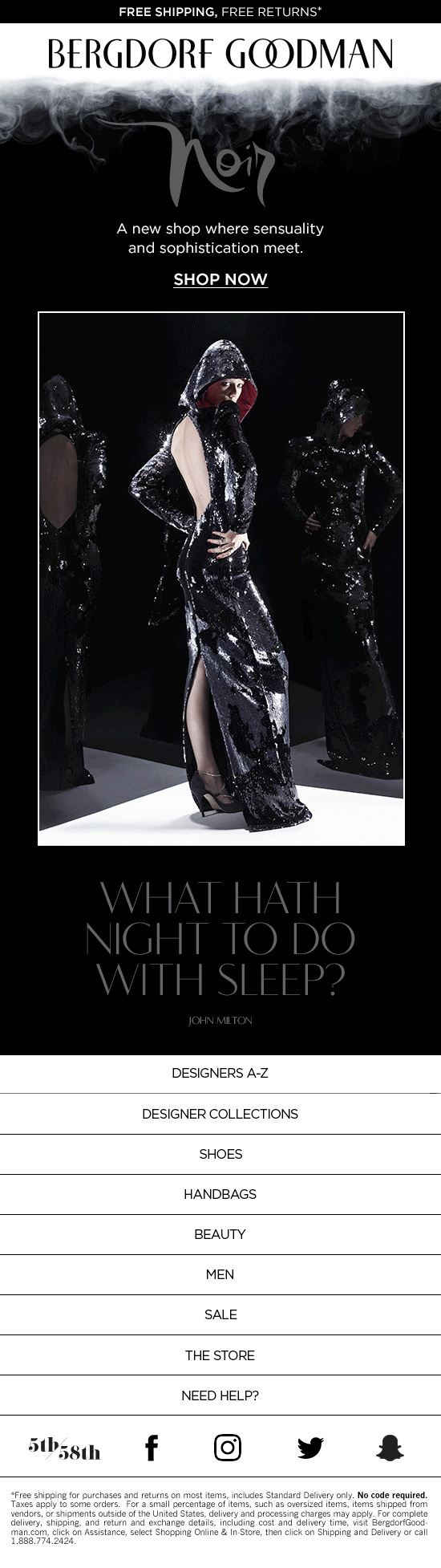 Noir made its debut as Linda Fargo’s curated boutique, headlining the launch of Fall 2018 across every channel from The Book to social media. Responsibilities within this campaign included the development of homepage design for a Noir takeover, along with the launch email and all additional email content.